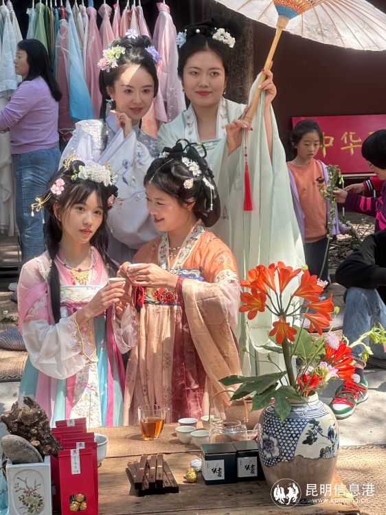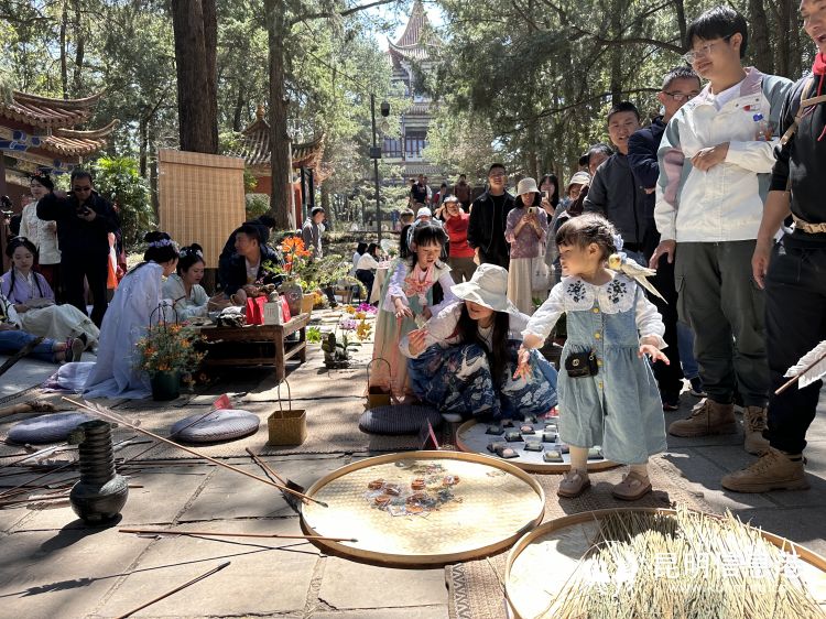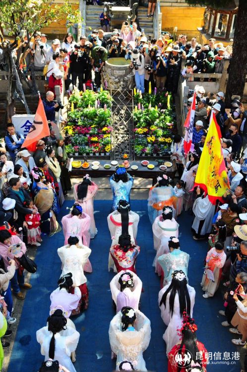金殿名胜区作为昆明最著名的历史文化与园林植物景观并存的景点,已连续举办了7年花朝节。每逢花朝当日,满园春花与传统活动可吸引上千汉服爱好者身着历代传统服饰前来祝贺,现场蔚为壮观。祈愿、传统知识讲座、民俗游园、汉服巡游表演、传统技艺比赛、非遗展示、汉服集市等系列活动令金殿花朝节口碑载道,已然成为一张影响力斐然的城市文化名片。