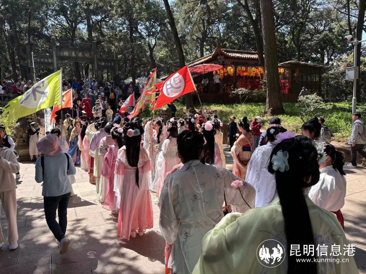 昆明信息港讯 记者杨雁 3月16日,2024年“金殿第八届花朝节”举行,汉服爱好者、摄影师和市民游客近2万人在金殿名胜区沉浸式古风打卡游园。