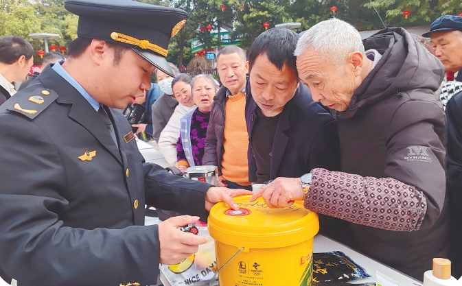 3月15日,永善县市场监管局、县文化和旅游局、县农业农村局、县公安局等单位联合到县城工农广场开展“3·15”国际消费者权益日宣传活动。活动中,各单位通过悬挂宣传横幅、设立宣传展板、发放宣传资料等形式,向过往群众详细讲解消费者权益保护法、商标法、旅游法等法律法规相关知识。图为工作人员教群众辨别假冒伪劣产品。(通讯员:黄桦 文/图)