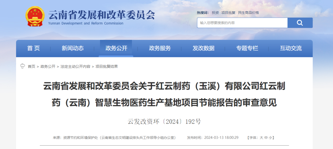 《玉溪市发展和改革委员会关于上报红云制药(云南)智慧生物医药生产基地项目节能审查的请示》(玉发改请〔2023〕181号)收悉。根据《中华人民共和国节约能源法》、《固定资产投资项目节能审查办法》(国家发展改革委令2023年第2号)、《云南省发展和改革委员会关于加强固定资产投资项目节能审查工作的通知》(云发改资环〔2017〕299号)有关要求,省发展改革委委托云南省节能监察中心组织有关专家对该项目(项目代码:2307-530499-99-01-509339)节能报告进行了评审,对项目能源消费情况、能效水平、用能工艺及节能管理措施等提出如下意见: