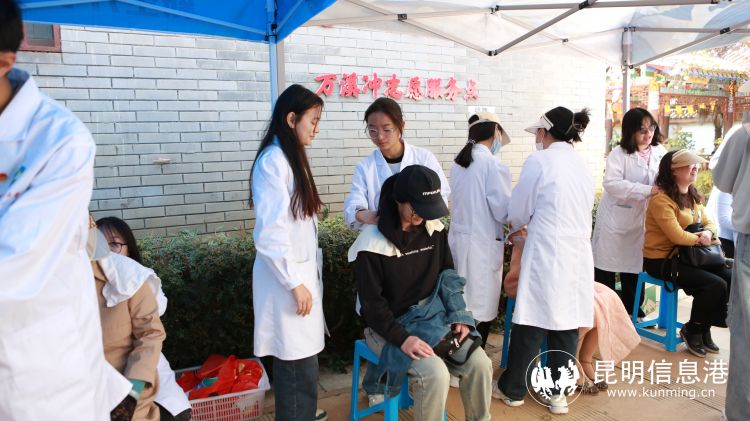 现场,来自云南中医药大学、呈贡区新时代文明实践中心及云南民族大学体育学院民族传统体育志愿服务队的志愿者们,在万溪梨镇居家养老服务中心开展志愿服务活动。