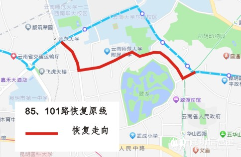昆明信息港讯 记者周智宇 记者从昆明公交集团获悉,自2024年3月23日起,1路、85路、101路3条公交线路将恢复在文林街、青云街的原行驶路线及停靠站点。