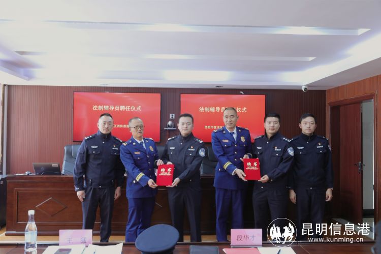 昆明信息港讯 为深入学习贯彻习近平法治思想,进一步提高队伍依法治队、从严治队水平,着力防范化解当前队伍建设和消防工作中面临的法律风险。3月20日,盘龙区消防救援大队举行法制辅导员聘任仪式,向两名“法制辅导员”颁发聘书。市交警支队二大队政治教导员杜远、区公安分局治安大队副大队长周琳森参加了聘任仪式。