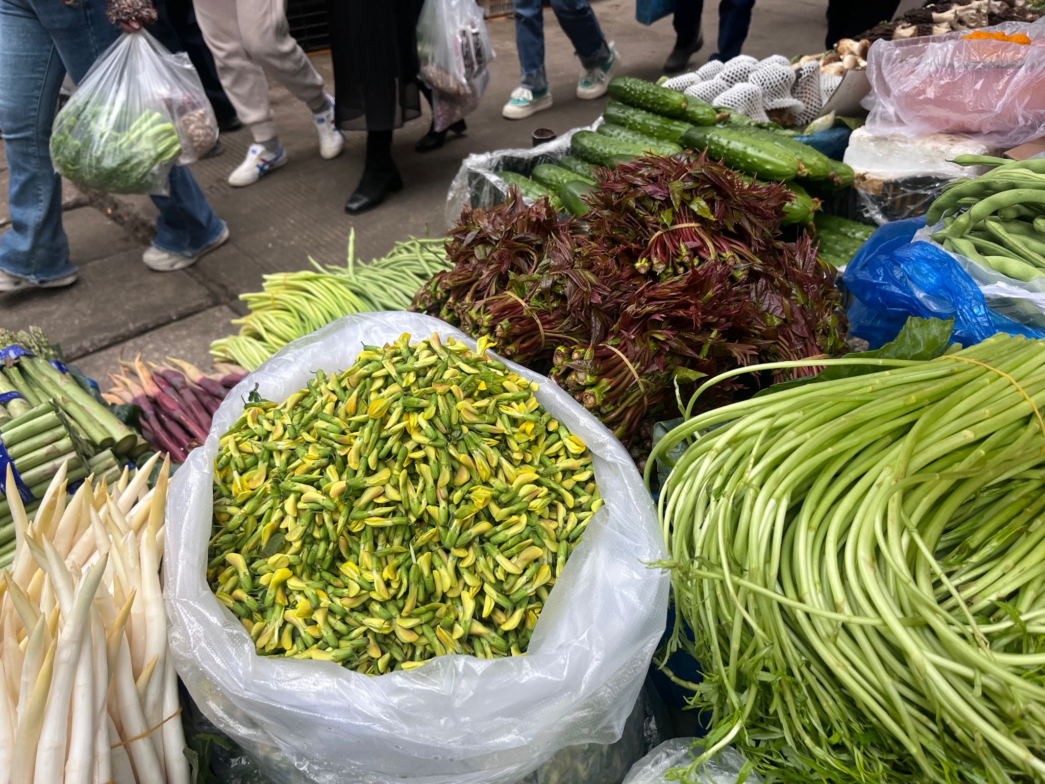 “核桃花怎么吃?”“炒吃,可以放韭菜一起炒。”金先生家卖着多种春菜,香椿50元/公斤,金雀花100元,棠梨花20元,蕨菜10元,核桃花80元。“本周香椿和金雀花都降了30元左右,现在算是春菜的旺季,数量、品种都有所增加,所以价格便宜。金雀花预计还能吃半个月,后期可能会涨价。”金先生说,本周新增核桃花和棕包花,两者都能炒吃,口感也不错。“春菜的品种比较多,但香椿、金雀花、蕨菜销量要好一些。”