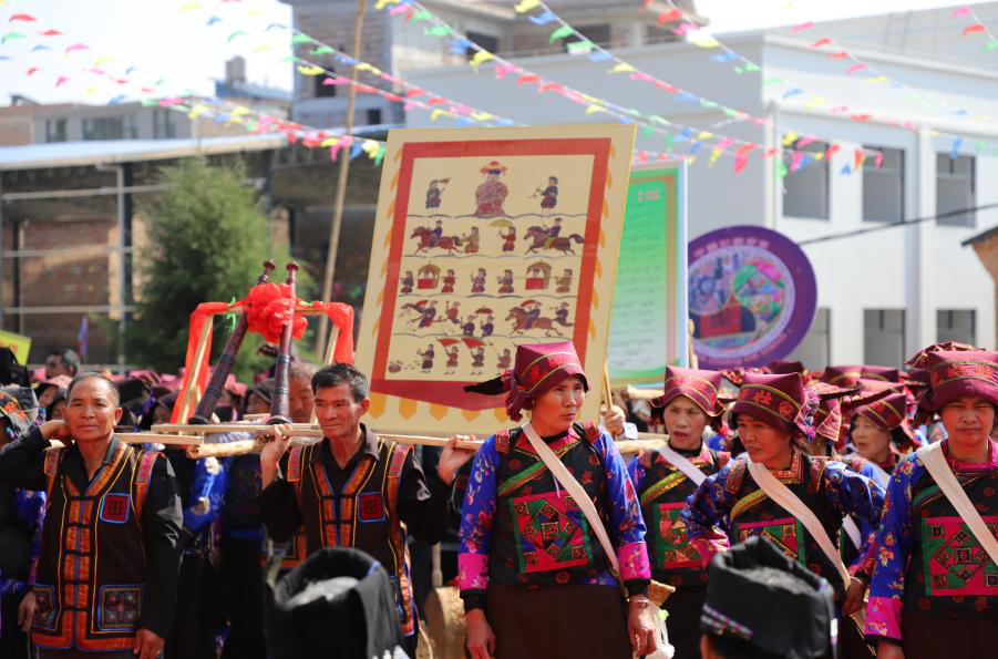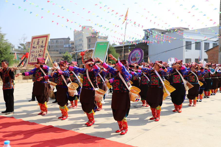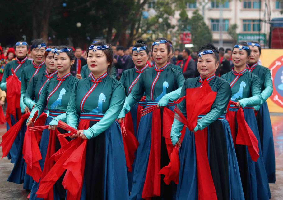 由红甸乡回族、苗族、彝族、傣族、壮族、汉族等群众组成的方队,结合本民族特色沿街进行展演,舞狮、跳芦笙、彩绘牛等让观众看得目不转睛。