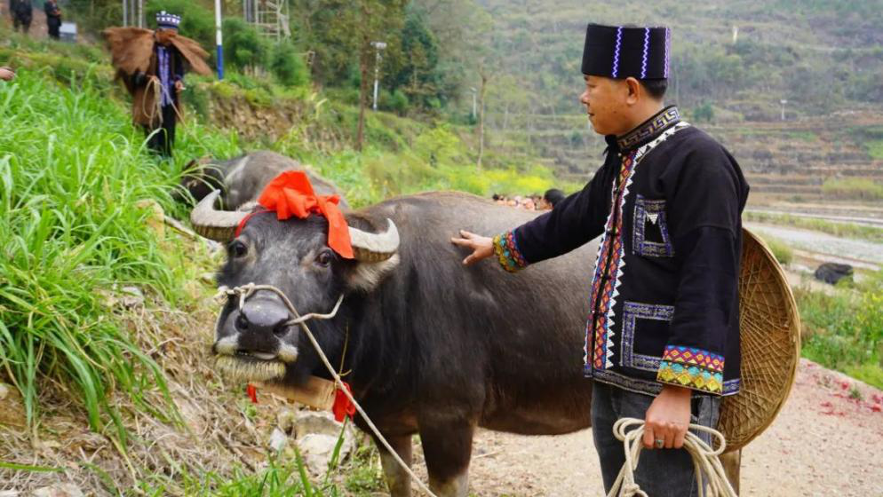 据了解,这是当地专门为耕牛设置的一个节日,名为“放牛节”,是从老辈人一代一代传承下来的,这个节日至今已有上千年历史。在“放牛节”这天,各家各户清早起来后,要清扫牛圈、修整牛栏、准备精细草料,有条件的还要清洗牛身,这一天不能赶牛下地干活,而是要把牛放到田间地头或者山上,让牛能够肆意吃草休息一整天。不奴役、不叱责、不打骂,既表达对牛的感谢和敬意,歌颂牛的勤劳和对人们做出的贡献,也是祈求风调雨顺,更好地促进春耕生产。