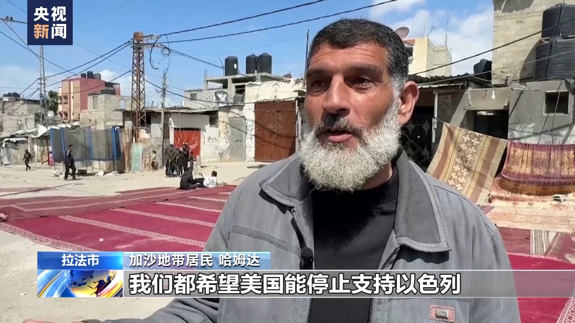 还有加沙居民表示,目前以色列正在不间断轰炸加沙地带,并即将对拉法开展地面行动。如果美国方面真心希望加沙地带停火,就应该立即停止向以色列输送武器。