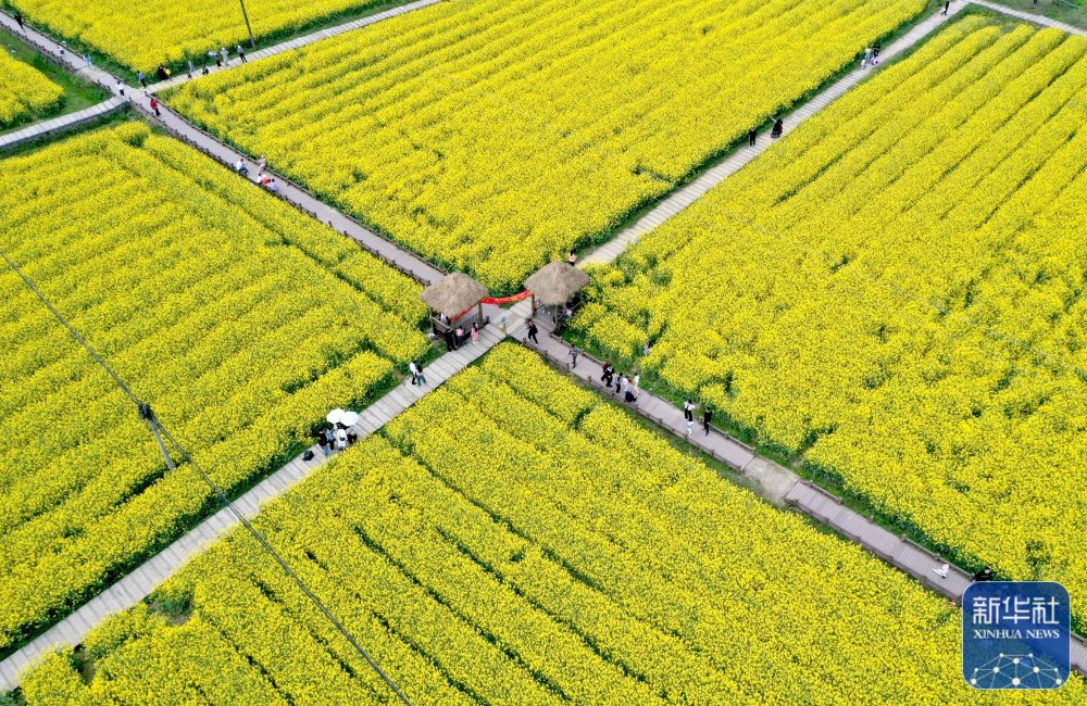 3月23日,游人在湖北省浠水县巴河镇城山村赏花游览。新华社发(赵军摄)