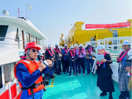 实地参访结束后,记者们与中交天航局的领导和相关负责人进行了一场深入座谈,共同探讨并了解中国生态治理的相关经验和未来发展。