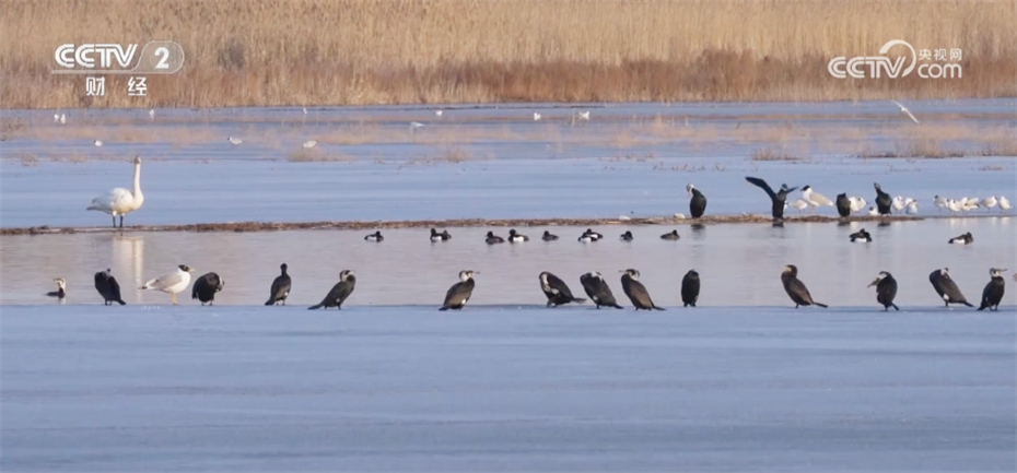 在新疆石河子市北湖湿地自然保护区,成群的白鹭、鸬鹚、绿头野鸭等候鸟在逐渐消融的冰面上停留栖息。它们时而梳理羽毛、时而成群翱翔,形成了百鸟云集的景观。当地保护人员加大监测力度,帮助它们安全度过春天。