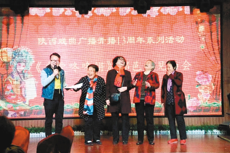 杨瑶(左一)在听众见面会中,与老戏迷欢乐互动。