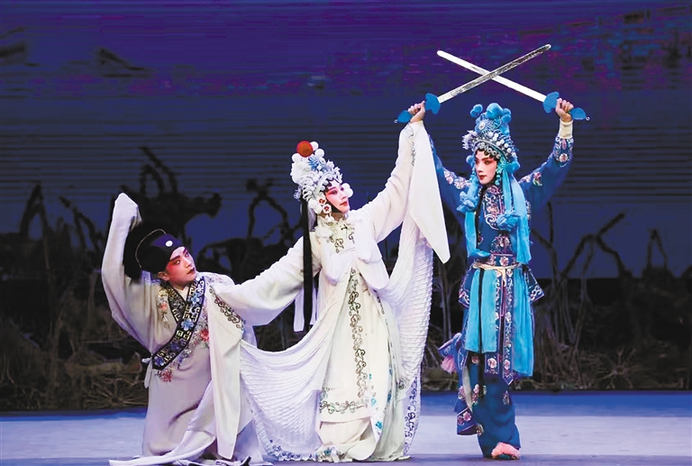 刘文静(中)在秦腔《白蛇传》中饰演白素贞。