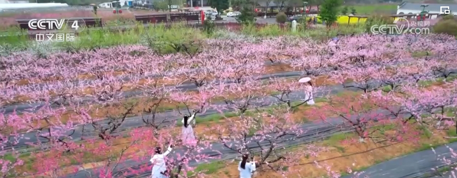 眼下,湖北孝昌县8万多亩桃花陆续灼灼盛开。在七仙红桃园基地,来自四面八方的游客拍照“打卡”、游园赏花,犹如一幅动态的花海画卷。孝昌县与高校院所合作,培育研发孝昌血桃等76个名优新品种,形成了产品研发、标准种植、技术培训、农旅融合、品牌销售、农业加工等6条全产业链条,每年吸引周边游客30万人次,桃产业成为农民朋友的“致富果”“摇钱树”。