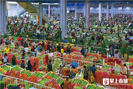 近年来,云南省鲜切花产业持续发展壮大,年产鲜切花超过180亿枝,花卉产值突破千亿元,以昆明市斗南花卉交易市场(下称“斗南花市”)、安宁市八街食用玫瑰基地等为代表的鲜花种植基地和交易场所也成为“网红打卡地”,吸引了众多游客。赏花、采花、买花、品花……鲜花产业延伸出多种玩法,“把春天带回家”成为云南之旅的新体验,“花卉+旅游”成为云南文旅的新亮点。