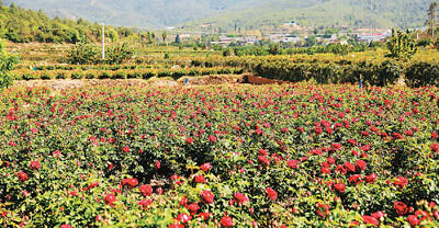 云南省昆明市安宁市八街食用玫瑰田风光。安宁市委宣传部供图