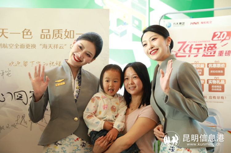 31日上午,祥鹏航空在昆明长水国际机场航站楼举办以“海天一色 品质如一”为主题的制服换新活动,身着“海天祥云”新制服的祥鹏航空乘务员及地面服务人员将候机楼变成“秀场”,为来往旅客带来一场视觉盛宴。同时,在当天祥鹏航空8L9887昆明飞往上海的航班上,一场万米高空的“T台”秀正在上演。乘务员先后向乘客们展示了祥鹏航空刚刚退出“历史舞台”的国际灰和紫色版制服,以及换新的“海天祥云”制服,并与机上乘客开展互动,向乘客赠送换装纪念卡片。