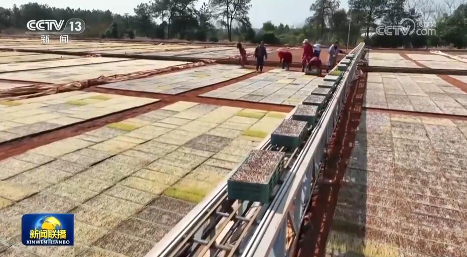 当前,南方早稻育秧进入高峰期。在江西余江的育秧中心,机械化育秧流水线加紧作业,一条生产线一个小时就能育秧2400盘。工厂化育秧降低了秧苗的病虫害,保障了秧苗的存活率,为实现水稻高产提供了有效保障。目前,江西早稻集中育秧已经超过1000万亩。