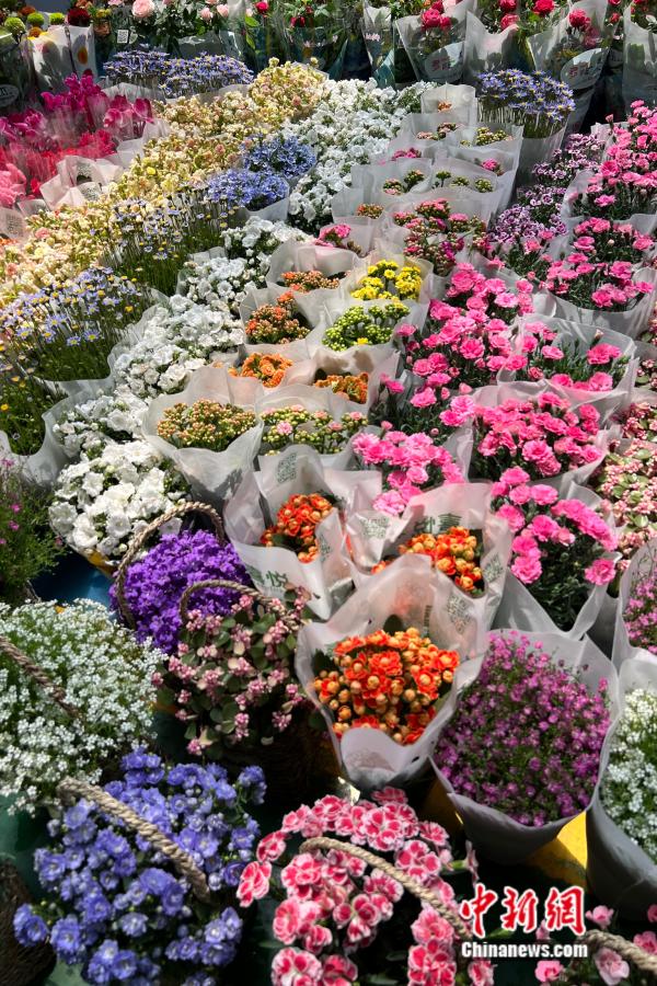 昆明斗南花卉市场,鲜花种类繁多。中新网 张钰惠 摄