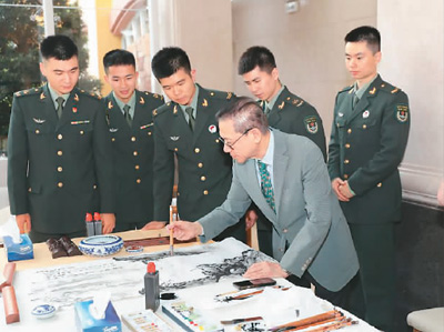 “书法和绘画是中华优秀传统文化的精华,不少官兵有相关的爱好和特长,我们也积极创造相应的条件和机会。”据驻澳门部队政治工作部负责人介绍,这次邀请澳门和内地书画家进军营,就是在增进军地情谊的同时,进一步传承和弘扬传统文化,打造驻军特色强军文化。