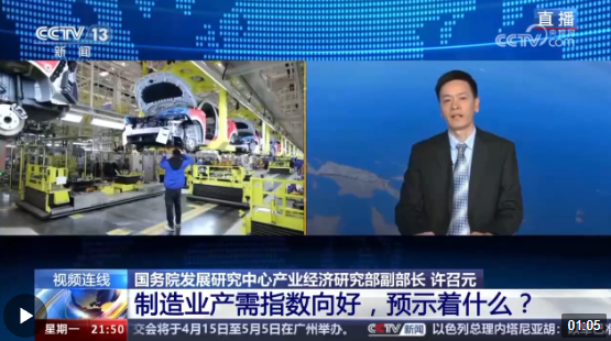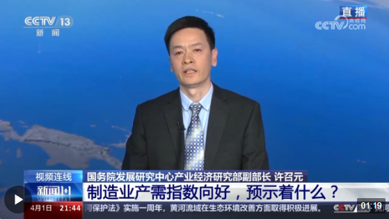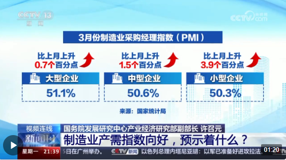 国务院发展研究中心产业经济研究部副部长 许召元:PMI指数是反映企业采购经理对经济运行的直观看法,对判断宏观经济形势是比较重要的。虽然从过去两年的经验看,3月份往往是一个短期的高点,它是春节的消费的因素,但是今年PMI指数重上50.8%,更多是反映了经济内生向好这样一个态势在逐步形成。