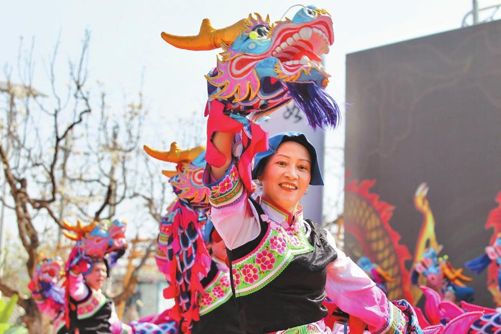 万溪冲舞龙表演。 见习记者 舒倩 高吴双 摄