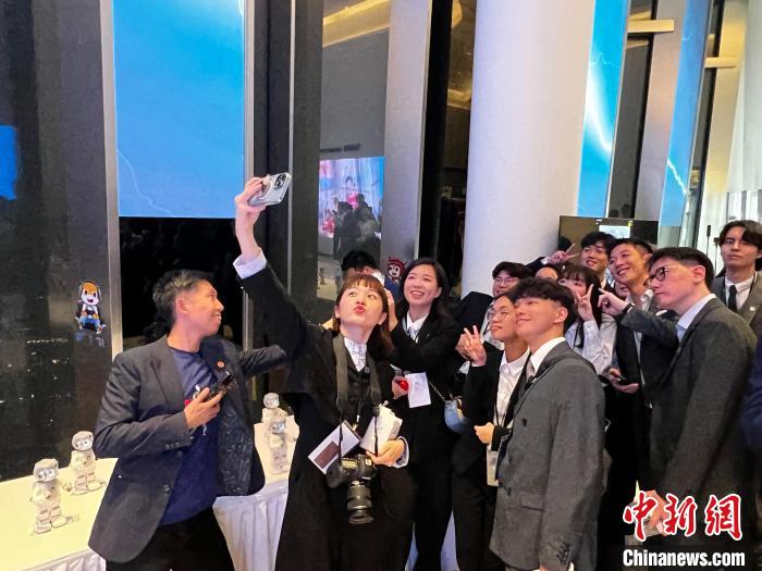 乘电梯以10米每秒的速度上升,约55秒便来到547.6米的云际观光层。当天抵达深圳、开启11天访陆之旅的马英九一行在此“打卡”深圳最高楼,俯瞰城市全貌。聆听刘天庭的介绍,在场台湾青年对其作品颇感兴趣,拿出手机拍照。