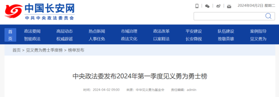 2024年第一季度见义勇为勇士榜中,有舍弃价值几十万元蟹笼海中救人的沈华忠;有在深水中连救两人的花甲老人程国利;有在断桥处拦车避免更多事故发生的黄福林、唐群辉、王国梁群体;有阻止凶犯持刀行凶的医生单国际、韦仲谋;有从15米高的桥上跳水救人的外卖小哥陈迎博……更有在水中多次救人英勇牺牲的19岁小伙李政;为抢险救火献出生命的邓璞、项姚兴、吴祥奇;有进入沼气井救人不幸遇难的张生贤……勇士们的事迹震撼人心、催人奋进,他们不怕困难和艰险,冲锋在前、见义勇为,用实际行动传承和弘扬了中华民族传统美德,践行了社会主义核心价值观。