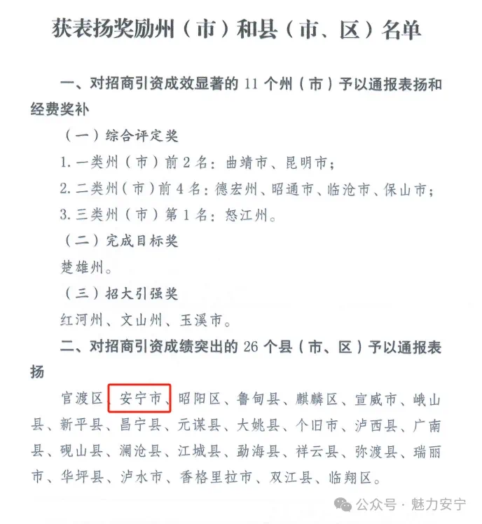 招商引资成绩突出!昆明市、官渡区、安宁市被通报表扬