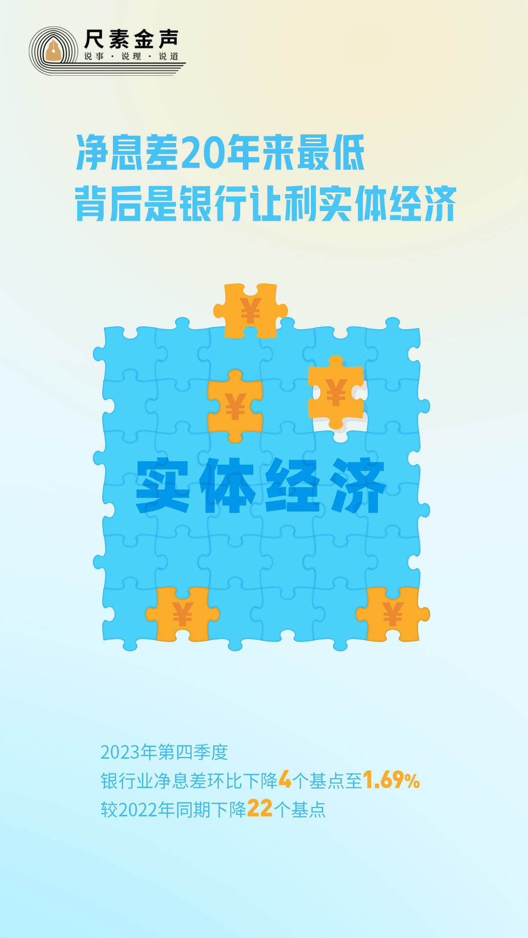 国家金融监督管理总局局长李云泽近日披露的数据显示,近年来我国实体经济综合融资成本持续下降,银行净息差已降到20年来最低水平。