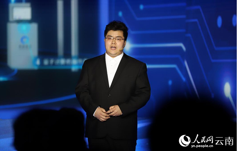 本源量子计算科技(合肥)股份有限公司市场运营总监俞书林介绍量子计算。人民网记者 李发兴摄
