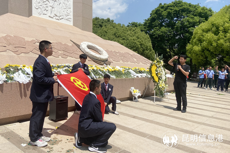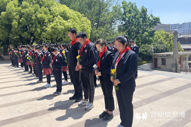 在庄严肃穆的氛围中,全体人员整齐列队、神情庄重地走到云南人民英雄纪念碑前,面对团旗重温入团誓词,怀着崇敬的心情,肃立默哀、鞠躬致敬、敬献鲜花,表达对革命先烈的深切哀思和崇高敬意。
