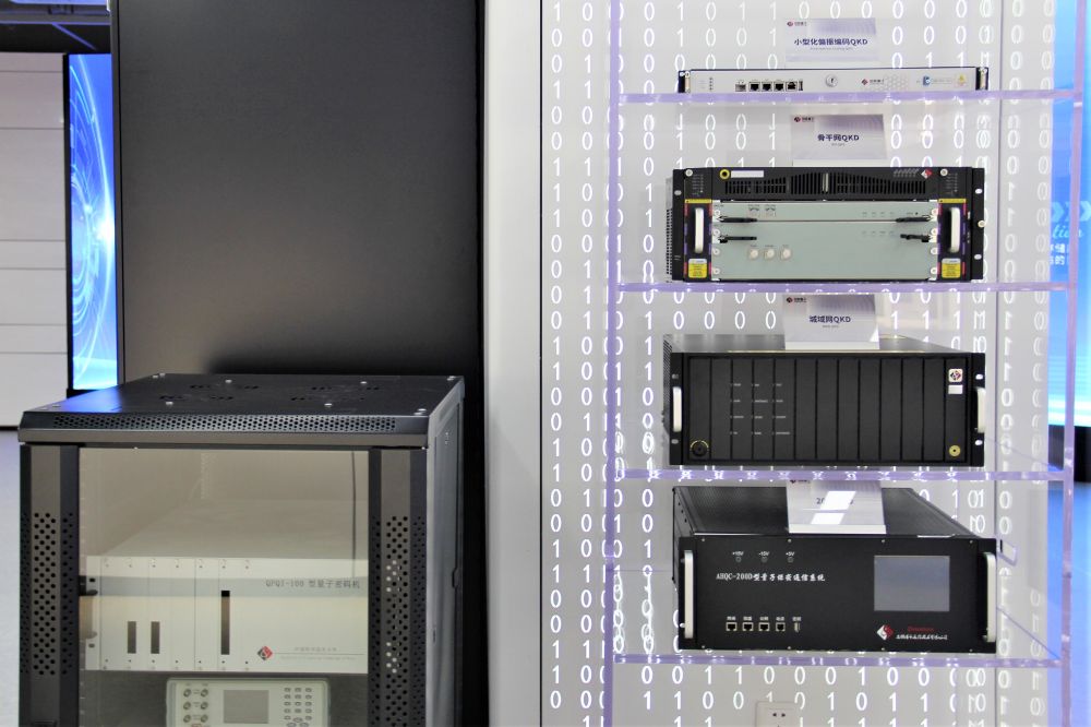 科大国盾量子技术股份有限公司展示的历代量子保密通信设备。新华社发