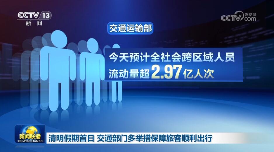 记者从交通运输部了解到,今天预计全社会跨区域人员流动量超2.97亿人次。其中,铁路客运量预计1750万人次,公路人员流动量预计2.77亿人次,水路客运量预计60万人次,民航客运量预计171万人次。