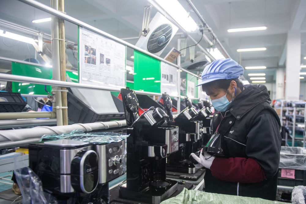 工人在宁波市江北区的宁波瑞孚工业集团车间生产小家电(2024年2月28日摄)。新华社记者 江汉 摄