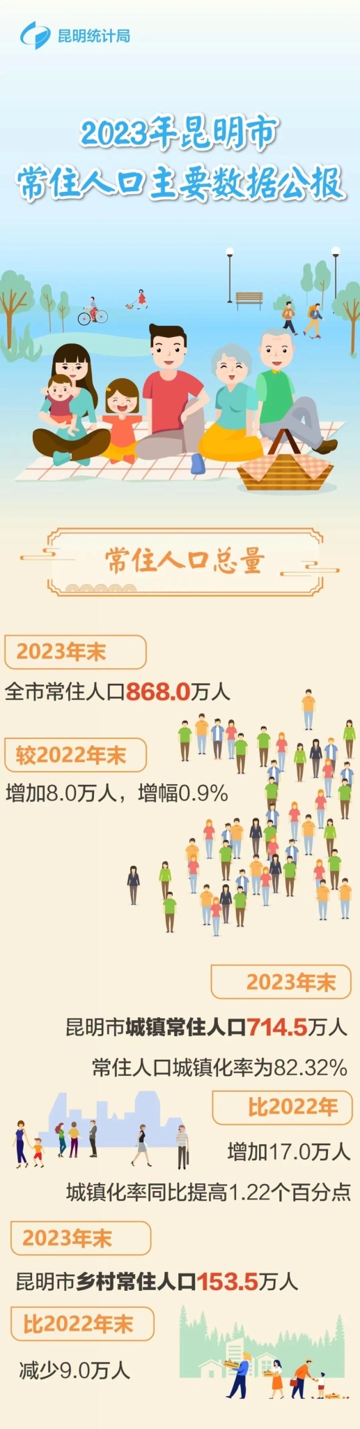 868万!2023年昆明市常住人口主要数据公报出炉