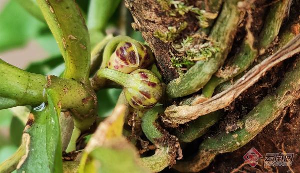 盆距兰在我国主要分布于海南、云南、西藏等地。在云南龙陵主要附生在常绿阔叶林的树(枝)干上。其被列入《濒危野生动植物国际贸易公约》(CITES)Ⅱ级,受国际贸易公约保护物种。(云南网 记者杨之辉 通讯员郁云江 杨荣廷 李开平 贺彬)