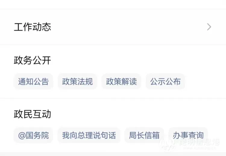 (三)政民互动:链接@国务院小程序、国务院客户端、局长信箱、办事查询等。