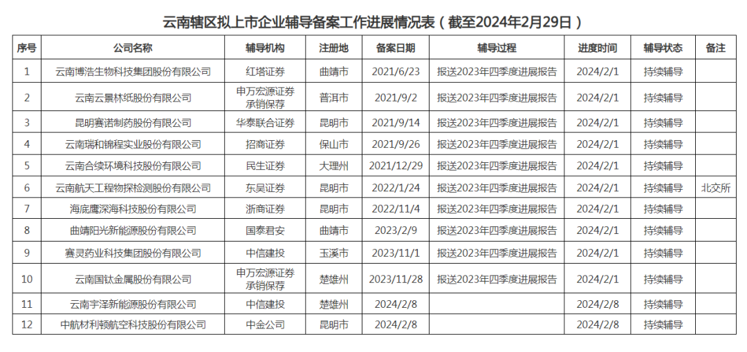 云南拟上市12家企业