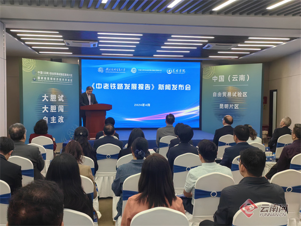 4月8日,中老铁路发展报告新闻发布会暨对外经济贸易大学兴滇教育合作座谈会在昆明举行。
