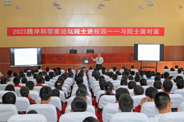 而在2023年12月3日,作为2023腾冲科学家论坛系列活动之一的“热爱科学崇尚科学”院士科普进校园活动也在腾冲一中火热举行。曾荣获2018年数学界最高奖菲尔兹奖的伊朗裔英籍数学家考切尔•比尔卡尔,以《From Science to Happiness》为题,阐释如何从科学中获得幸福,如何在解决问题、发现奥秘中收获喜悦。整个活动通过科普讲座、科学实验秀、科普图书展等形式,激发青少年探索科学的兴趣。