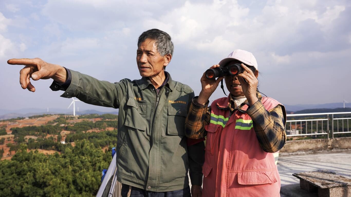 王石贵夫妇守的是花木山林场,20世纪80年代初还是乱石嶙峋的石漠化荒山,在“陆良八老”植树造林的带动下,参与植树的人越来越多,目前森林面积已经发展到7400多亩,而王石贵夫妇的任务,就是坚守林场的瞭望塔,守护这片林海。