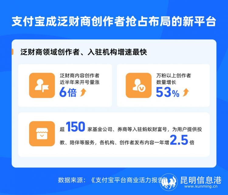 支付宝已成为泛财商创作者抢先布局的新平台。报告显示,以短视频、直播为代表的支付宝内容生态规模持续增长,过去一年,支付宝平台上MCN数量翻倍,直播间数量增长14倍。其中,泛财商成为增速最快的内容垂类,创作者开号量涨了6倍,超150家基金公司、券商入驻,提供投教、陪伴等服务,形成“内容+服务”的差异化特性。