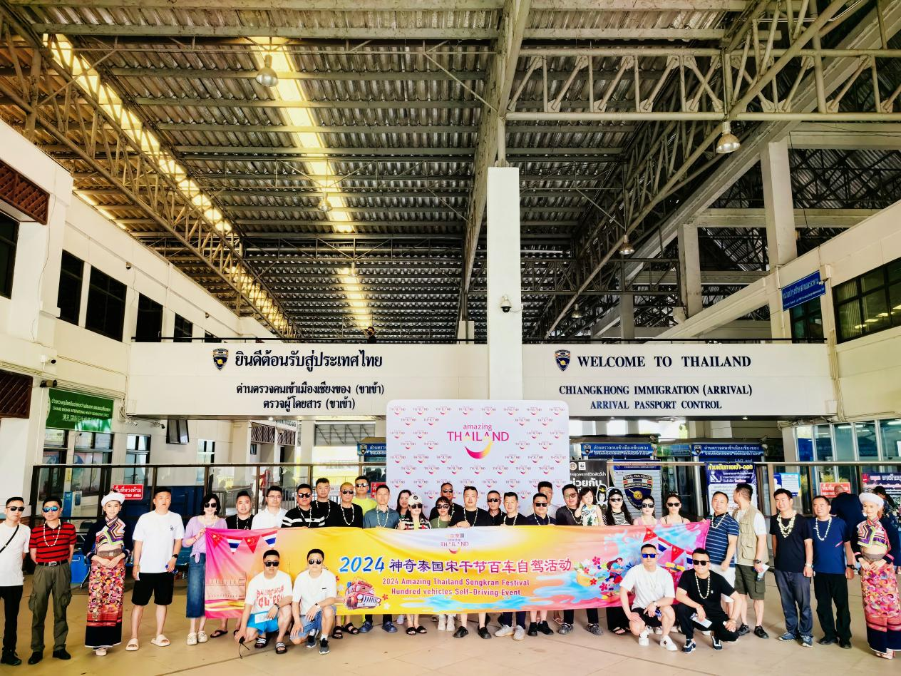 伴随着热情洋溢的欢迎声,60多辆汽车组成的自驾游车队井然有序地驶入泰国清莱府清孔口岸,准备开启一段充满异国风情的旅程。4月11日,正值泰国宋干节前夕,泰国国家旅游局(以下称:泰旅局)主办的宋干节百车自驾活动迎来第一批中国游客,泰国相关部门领导亲临口岸欢迎八方来客。