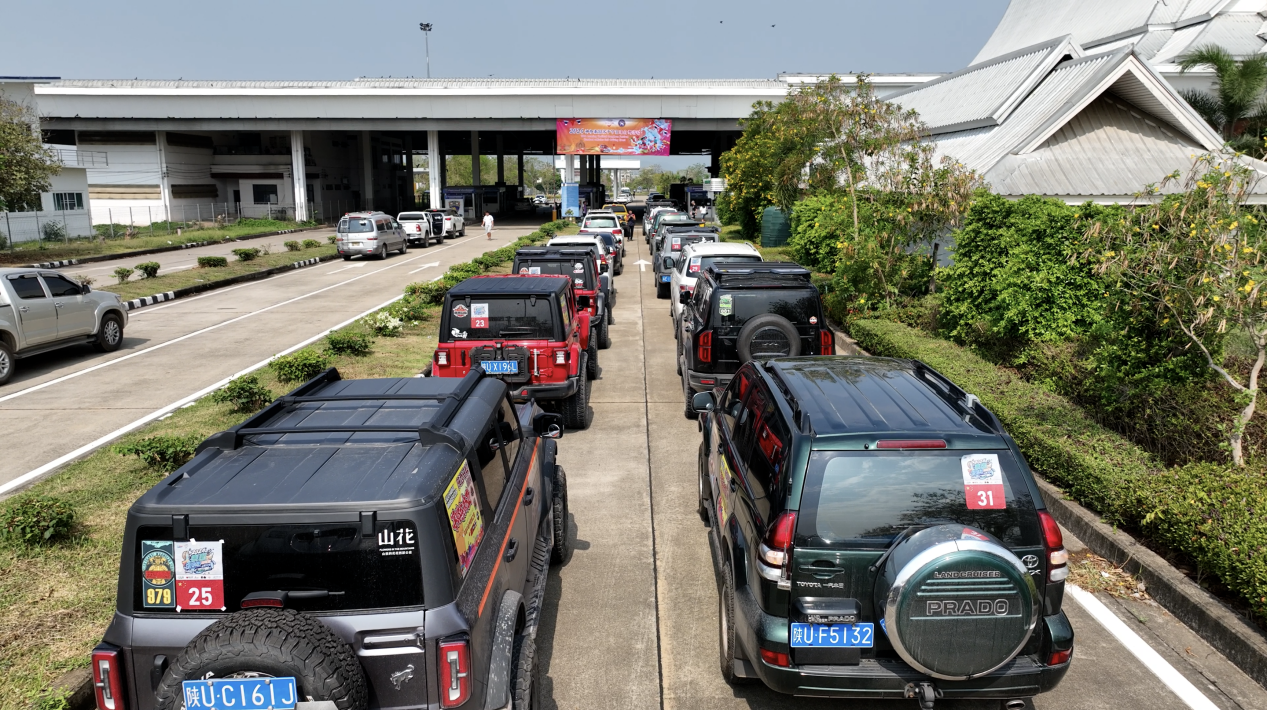 随后,“云A”“桂A”“粤A”“新A”“苏E”……标识的车辆陆续抵达清孔口岸。经福建、广东、广西、云南、老挝到达泰国的林先生此行也是第一次自驾,林先生说:“此次我们的行程是经过老挝、泰国,最终抵达马来西亚。希望此行的10多位车友能在泰国宋干节期间,玩得开心、尽兴。”