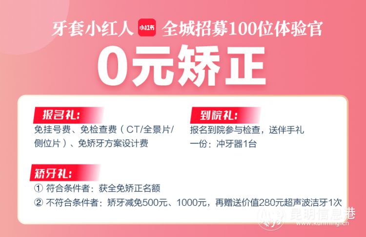 ☑4、不符合条件者:矫牙减免500元、1000元,再赠送价值280元超声波洁牙1次。