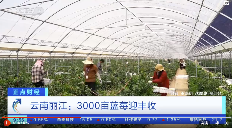 央视网消息:在云南丽江玉龙县大具乡,3000亩蓝莓迎来了丰收,昔日贫瘠的荒石滩如今变身为丰收的蓝莓基地。