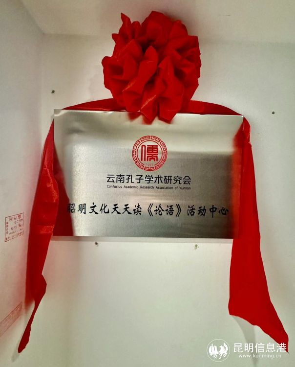 云南孔子学术研究会会长谭中贵、云南昭明文化传播有限公司董事长杨春莲为中心揭牌。揭牌仪式结束后,举办了《论语》诵读活动。