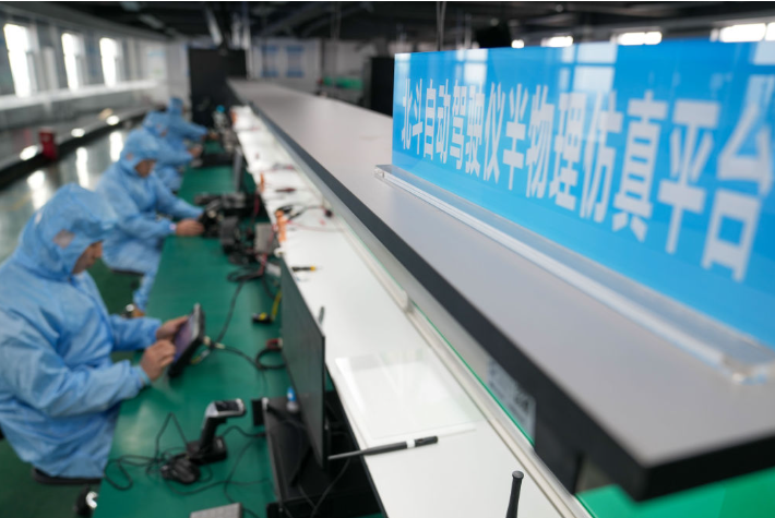 2024年3月13日,在北大荒(佳木斯)精准农业科技有限公司生产线上,工作人员对生产的北斗自动驾驶仪进行测试。新华社记者 王建威 摄