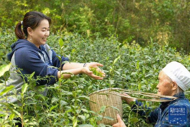 4月14日,村民在贵州省遵义市凤冈县一茶园内采摘春茶。新华社发(罗星汉摄)