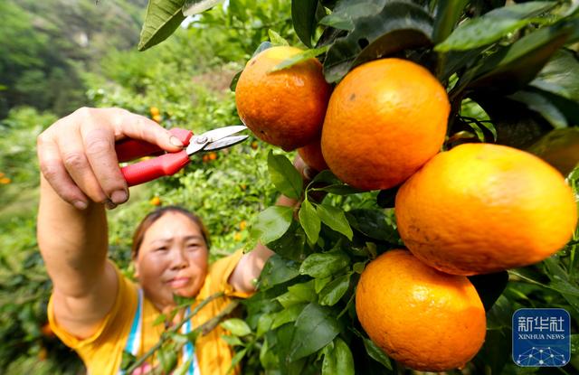 4月14日,村民在贵州省开阳县云开街道石头村采摘柑橘。新华社发(袁福洪摄)